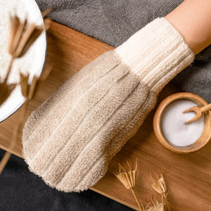 The feeling of well-being of a pure natural product is further enhanced by the skin feel. Wet or dry peeling - this glove produces an unparalleled smooth and clear complexion. Machine washable at 40°C. Not suitable for tumble drying.