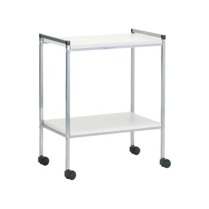 • Mesa pedestal con 2 estantes L. 60 x P. 40 x H. 80 cm en madera laminada blanca