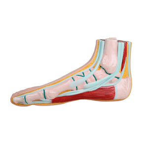 Le modèle de pied physiologique grandeur nature montre les structures superficielles, les os, les muscles et les ligaments à l'intérieur du pied.