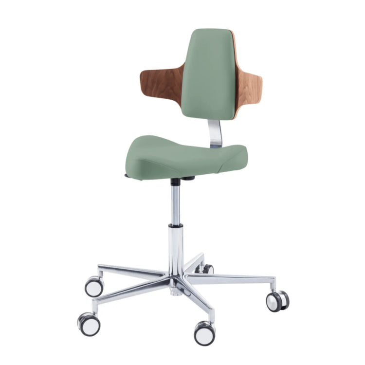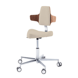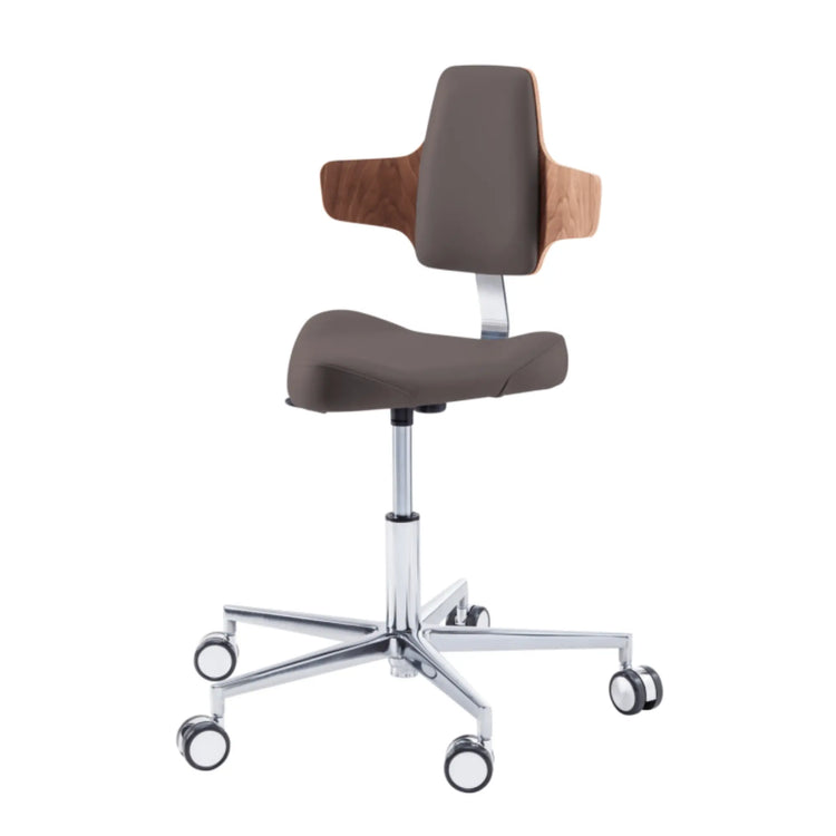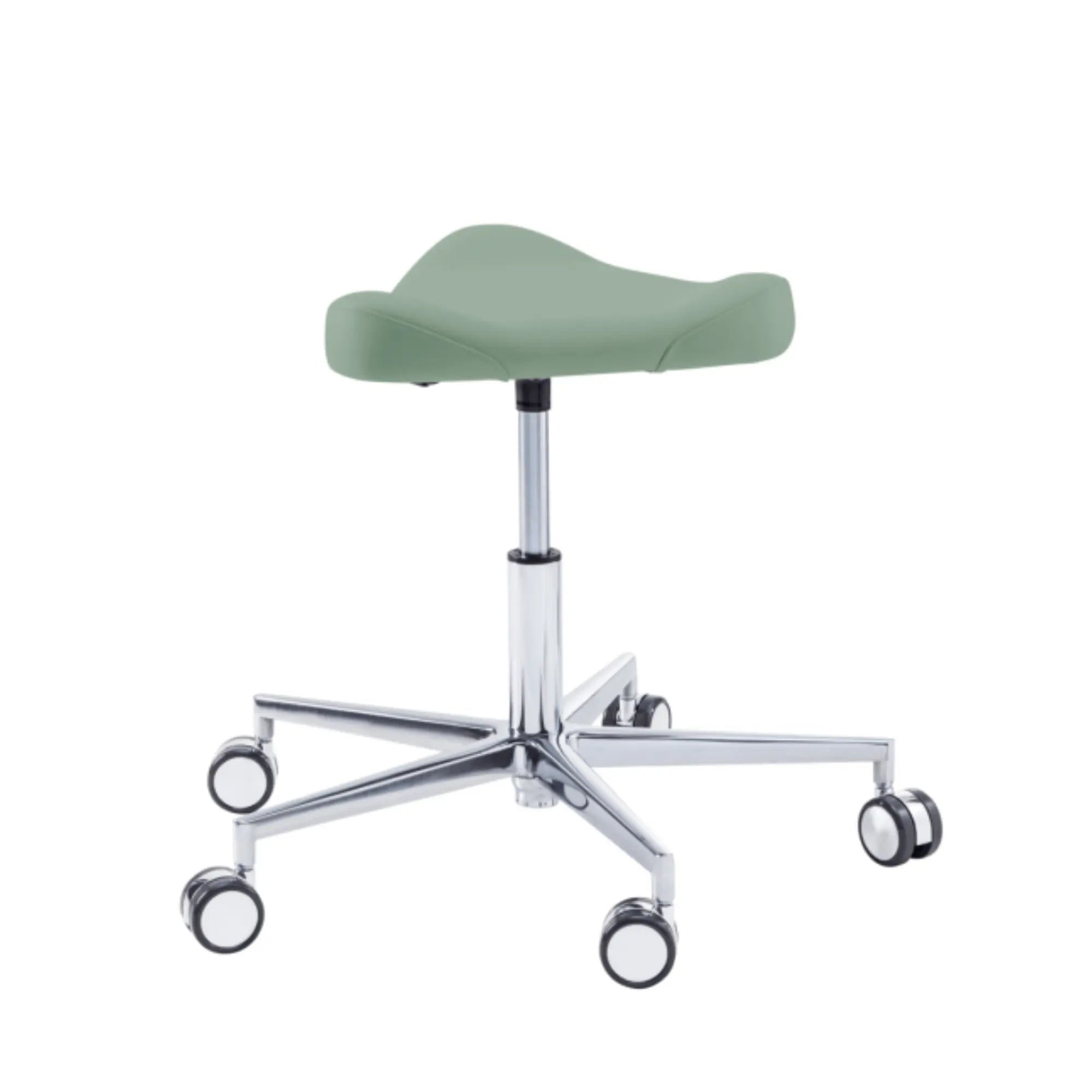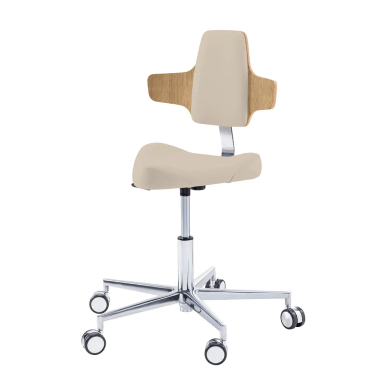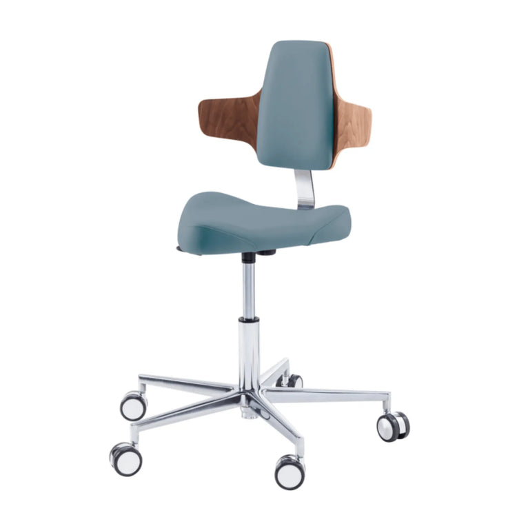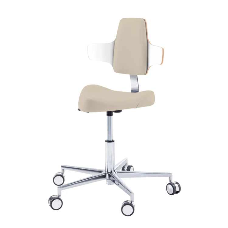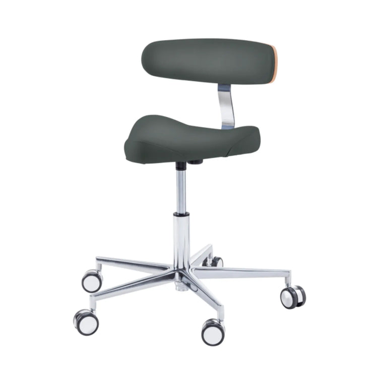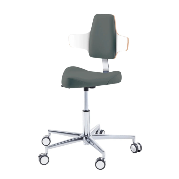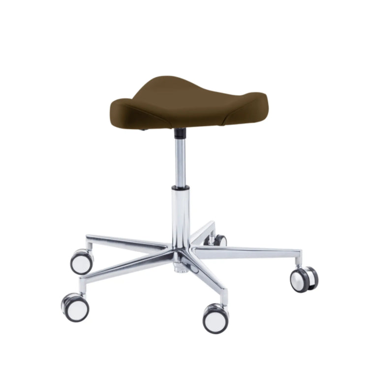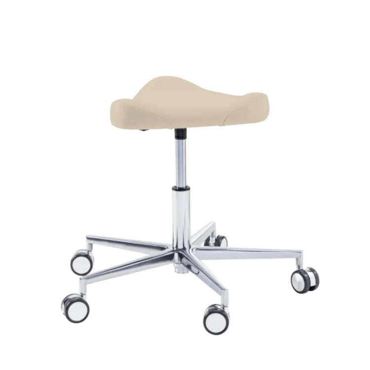 Este asiento de forma triangular proporciona cierta libertad de movimiento en los muslos con elementos de soporte moldeados lateralmente. Esto le permitirá moverse fácilmente por su oficina sin tener que levantarse de su taburete.