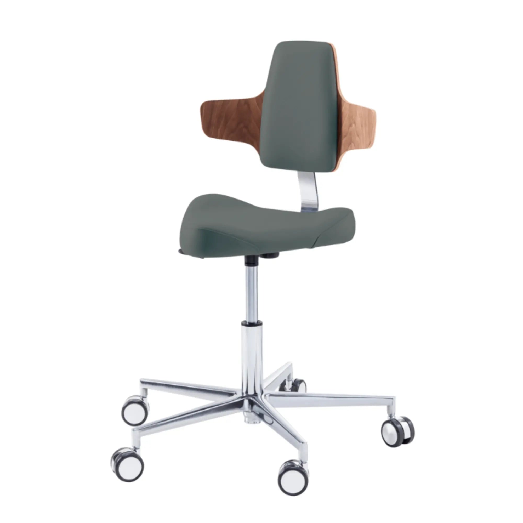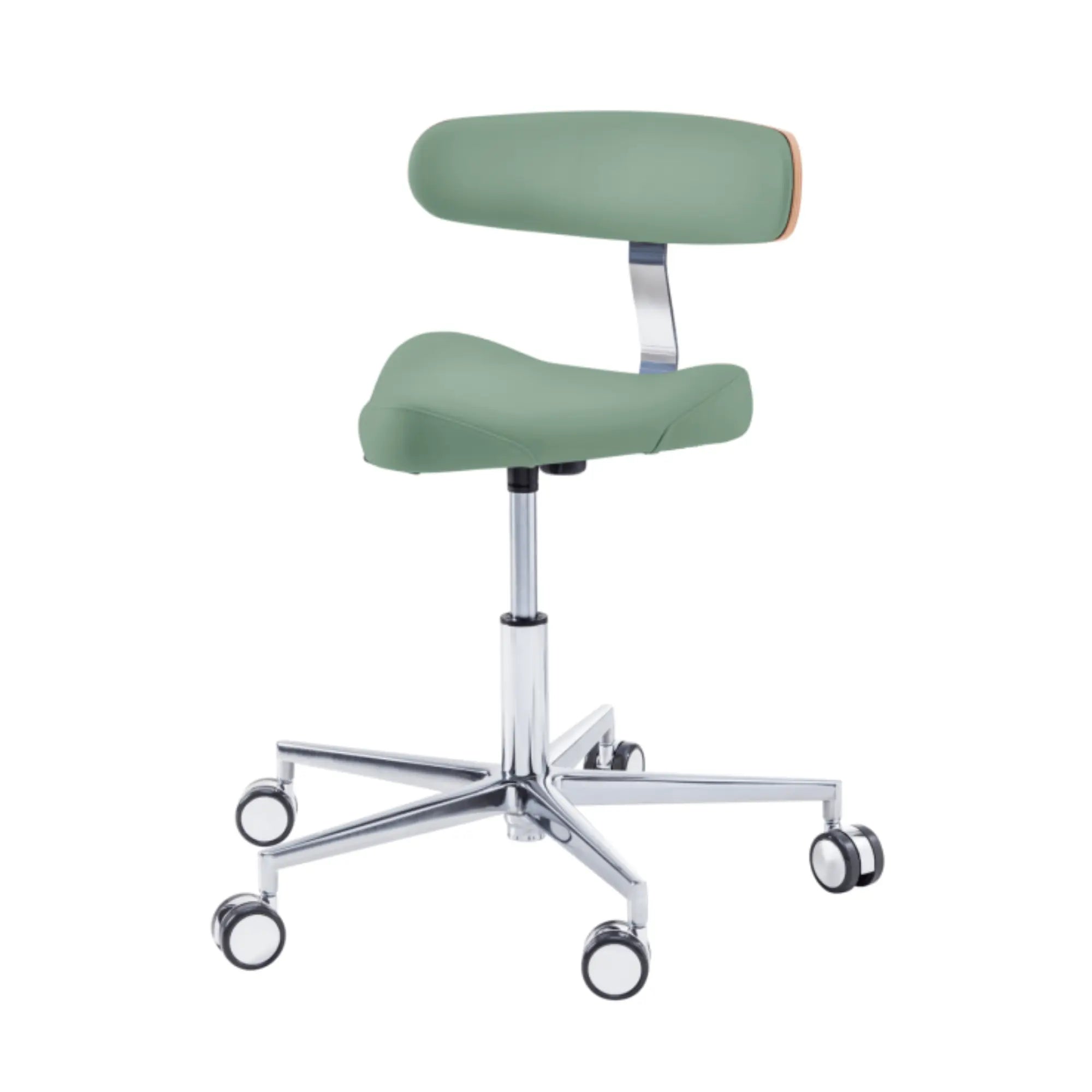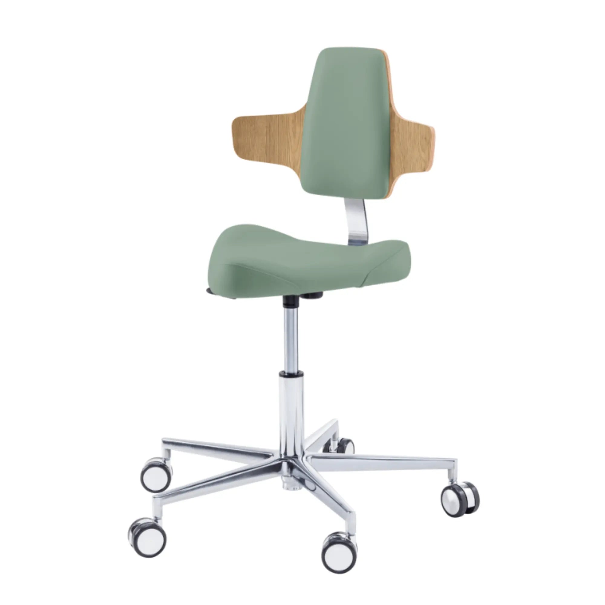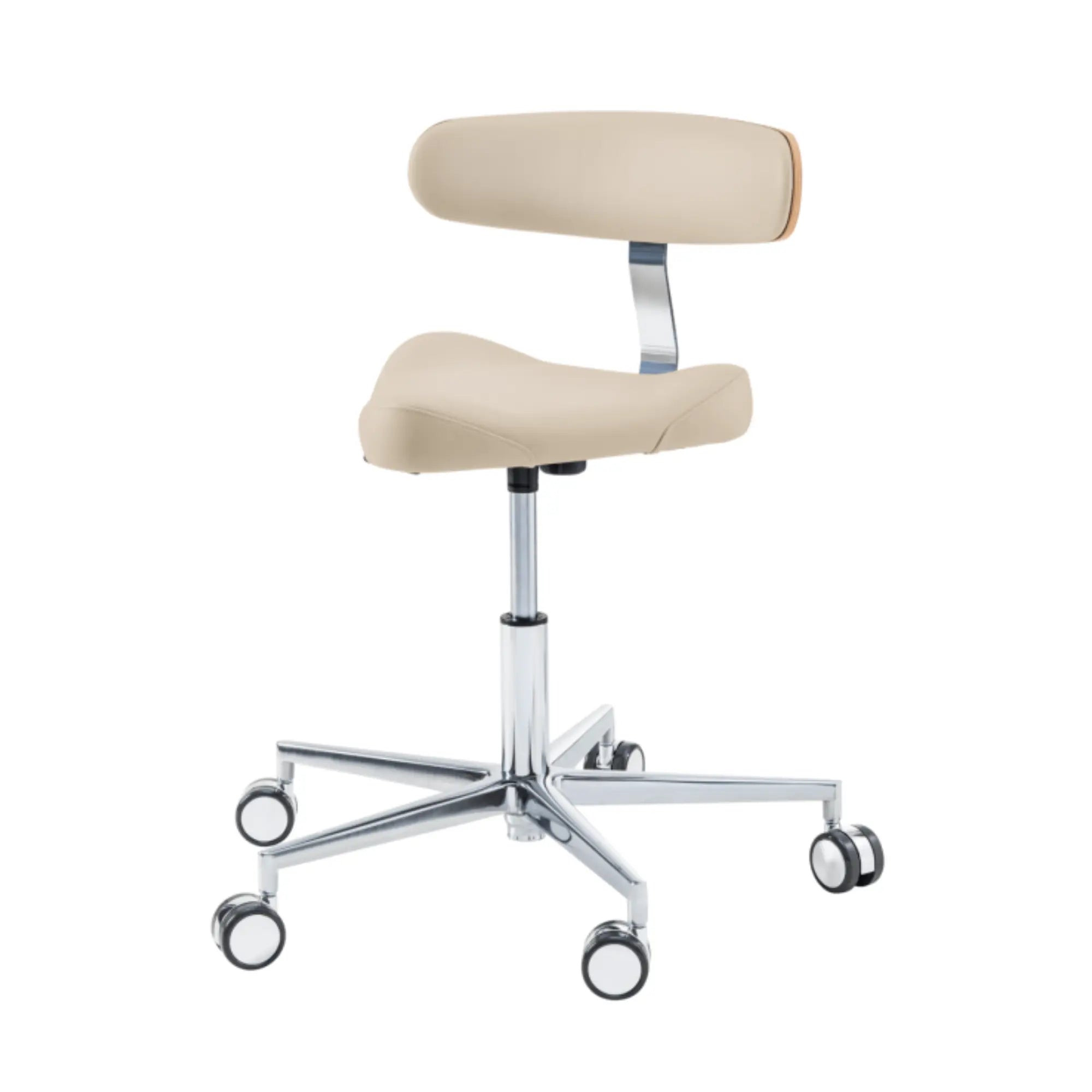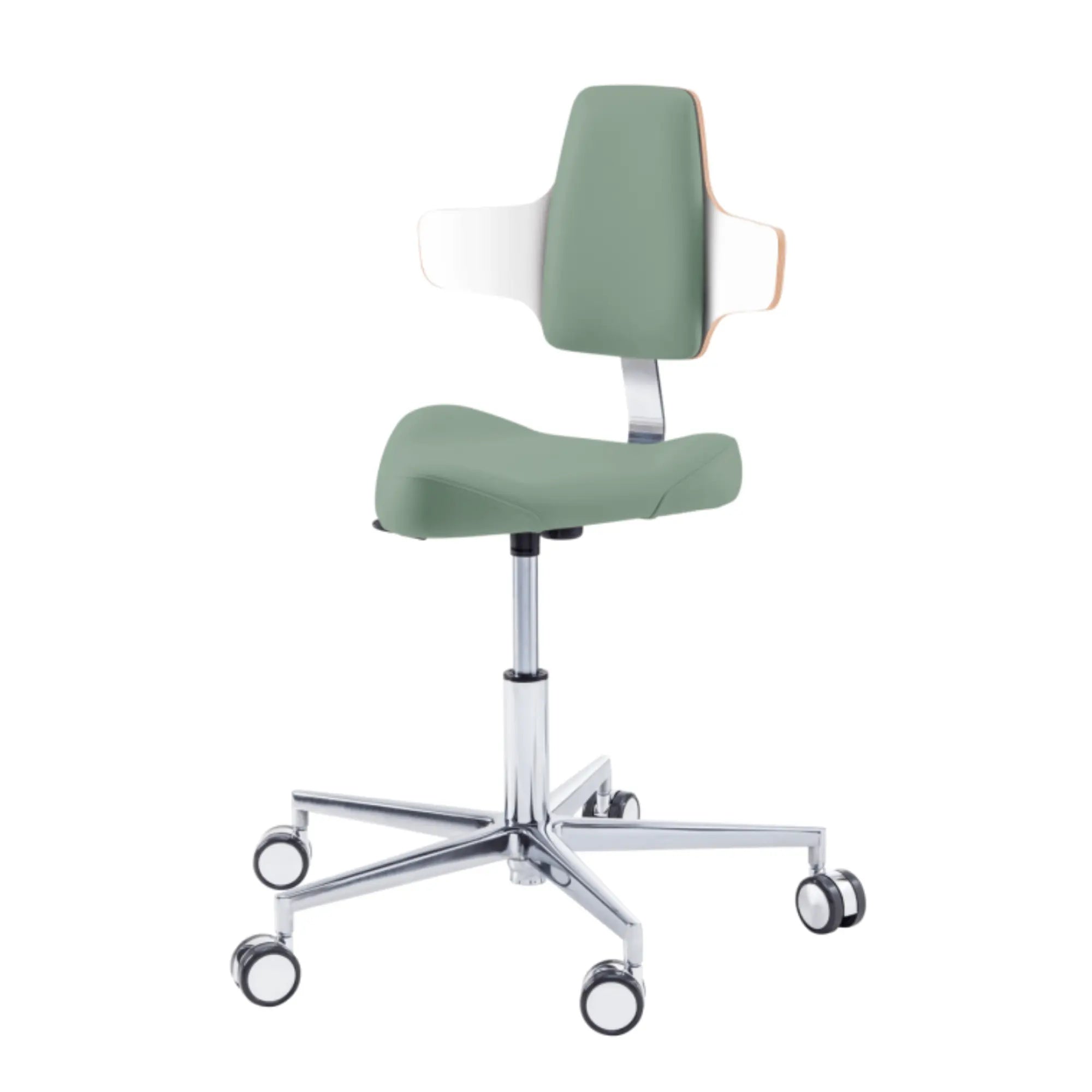 Este asiento de forma triangular proporciona cierta libertad de movimiento en los muslos con elementos de soporte moldeados lateralmente. Esto le permitirá moverse fácilmente por su oficina sin tener que levantarse de su taburete.