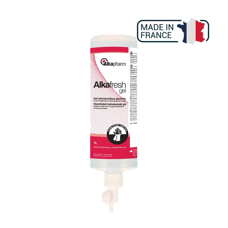 Alkafresh - Gel hydroalcoolique glycériné pour la désinfection des mains - Flacon airless - 1 L - Alkapharm