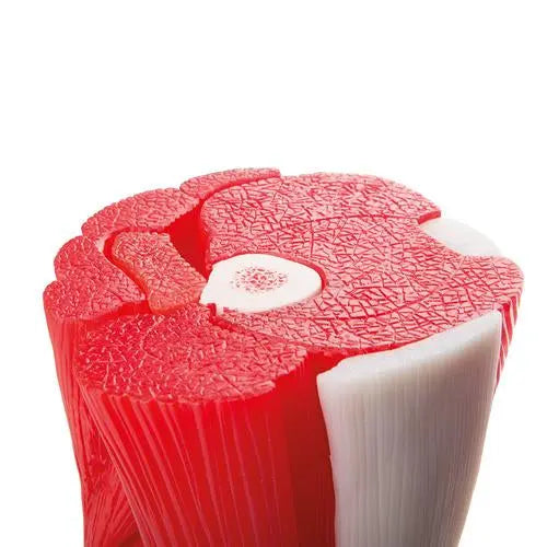 Pour compléter notre kit d’articulations et leurs muscles, nous sommes fiers de présenter ce modèle de genou en douze pièces. Il montre les différents muscles amovibles et les parties musculaires de la région du genou. Les régions colorées et relevées indiquent l’origine du muscle et les points d’insertion sur le fémur, le tibia et la fibula. Les parties des ligaments collatéraux fibulaires et tibiaux sont également représentées. Tous les muscles de la jambe sont simples à retirer, permettant l’étude des couches anatomiques plus profondes.