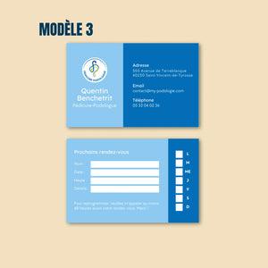 Nous vous proposons des cartes de visite professionnelles, spécialement conçues pour les pédicures-podologues, imprimées en recto-verso sur un papier de qualité.