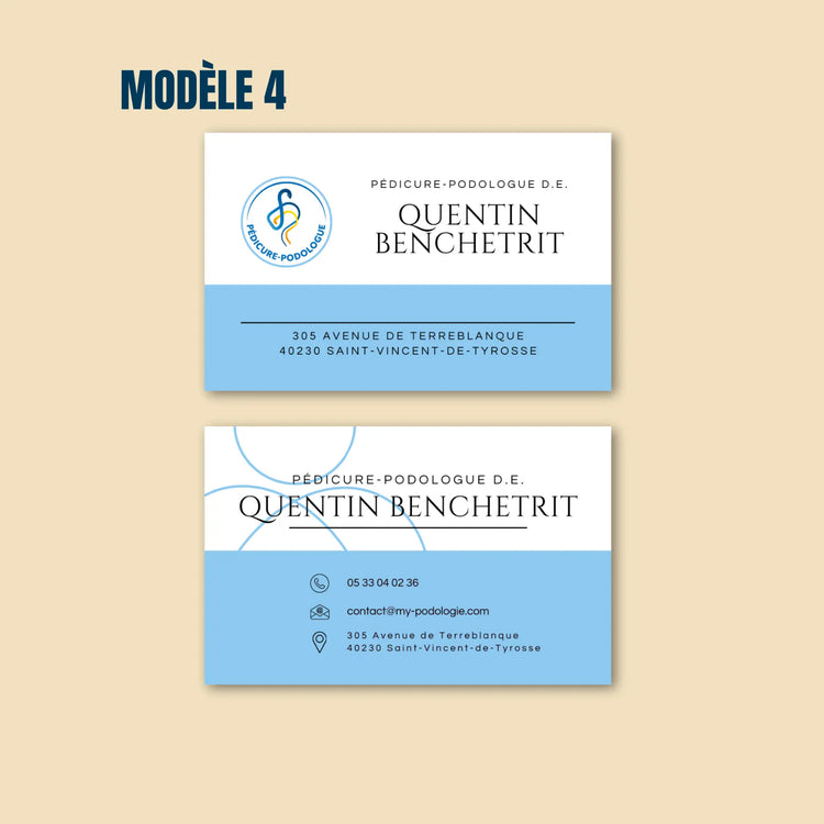 Vous avez déjà votre visuel prêt à l’impression ? Envoyez-nous votre fichier au format 85 x 54 mm, en haute qualité (format PDF obligatoire), directement en réponse au mail que vous recevrez de notre part après votre commande. Si vous ne recevez pas ce mail, vous pourrez nous écrire à contact@my-podologie.com avec votre visuel.