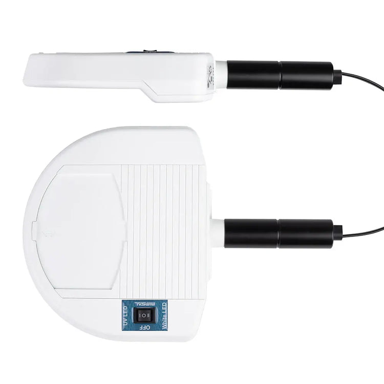 • VISTA Compacte UV FL 9W HANDLE H.F: Version portative avec tête de couleur blanche et manche de couleur noire.